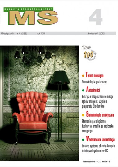 Po kilku miesiącach przygnębiających, szaroburych dni przyszła wreszcie upragniona wiosna. Dni stały się dłuższe, nie tylko za sprawą wprowadzenia czasu letniego, słoneczko przyjemnie grzeje, trawa się zazieleniła, zakwitły pierwsze wiosenne kwiaty – aż chce się żyć. W tak pięknych okolicznościach przyrody, jak mawiał filmowy klasyk, zachęcam wszystkich Państwa do wyciągnięcia sportowych butów, rowerów, do wypadu za miasto, na łono natury, na działkę. Naładujmy akumulatory, by wzmocnić nadwątlone zimą i nawałem pracy siły. A kiedy już zmęczenie nieco ustąpi, radzę sięgnąć do kwietniowego, numeru „Magazynu Stomatologicznego”, którego tematem, przewodnim jest stomatologia praktyczna. Nie będę omawiał zawartych w nim artykułów. Sami się Państwo przekonają, że dotyczą różnych zagadnień i różnych dziedzin stomatologii. Położyliśmy akcent na praktyczność prac, zdajemy sobie bowiem sprawę, że mogą być one przydatne w rozwoju zawodowym młodych adeptów dentystyki, których wielu jest czytelnikami i prenumeratorami naszego pisma. Myślę, że także wytrawni praktycy znajdą w kwietniowym numerze MS i na stronie internetowej www.magazyn-stomatologiczny.pl coś interesującego. Radzę więc na nią zajrzeć. A po szczegóły odsyłam do spisu treści MS 4/2012.