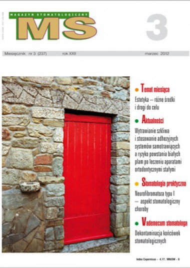 Estetyka uzębienia stanowi jeden z nadrzędnych celów współczesnej dentystyki. By go osiągnąć, wykorzystuje się różne drogi i środki. I o tym mówi temat miesiąca marcowego numeru MS, w którym znajdą Państwo prace poświęcone: diagnostyce i terapii ubytków tkanek twardych zębów pochodzenia niepróchnicowego, przywróceniu utraconej wysokości zwarcia z użyciem wkładów i nakładów ceramicznych, korony pełnoceramicznej oraz licówek porcelanowych, zastosowaniu wybielania nakładkowego, koron pełnoceramicznych, licówek kompozytowych i kompozytu najnowszej generacji w rekonstrukcji estetycznej zębów, opisowi przypadków użycia materiału złożonego w codziennej praktyce stomatologicznej oraz rehabilitacji protetycznej pacjenta z zaawansowaną, postępującą atrycją zębów.
