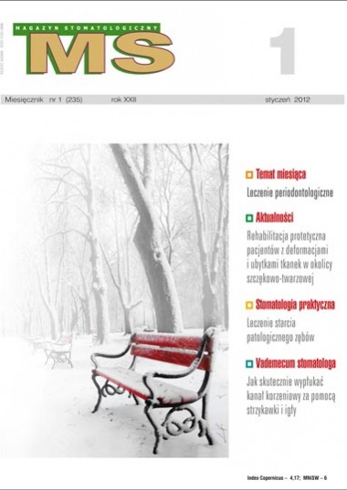 Do Nowego Roku 2012 pozostało już tylko kilka dni, ale w redakcji nikt nie myśli o zabawie sylwestrowej ani fajerwerkach na jego powitanie. Dobiega końca gorączkowa praca nad pierwszym przyszłorocznym numerem „Magazynu Stomatologicznego”, którego tematem przewodnim jest leczenie periodontologiczne. Bardzo Państwa zachęcam do uważnego przeczytania zawartych w dziale „Temat miesiąca” artykułów. Przekonają się Państwo, jak bardzo są interesujące i jaki pokaźny ładunek wiedzy naukowej, a także czysto praktycznej nie tylko z dziedziny periodontologii, ale i innych działów stomatologii niosą ze sobą. Leczenie wielospecjalistyczne jest dziś często koniecznością w stomatologii i bez niego nie można sobie wyobrazić współczesnej periodontologii. I o tym właśnie – o powiązaniach terapii periodontologicznej z leczeniem zachowawczym, protetycznym i ortodontycznym mówią zamieszczone w tym dziale prace. W tym miejscu chciałbym podziękować Pani dr hab. Elżbiecie Dembowskiej, kierownikowi Zakładu Periodontologii PUM, za ogromy wkład autorski i przygotowanie do druku całego bloku prac, które powstały w ośrodku szczecińskim i w Zakładzie Chorób Błony Śluzowej Jamy Ustnej i Przyzębia Instytutu Stomatologii Warszawskiego Uniwersytetu Medycznego.