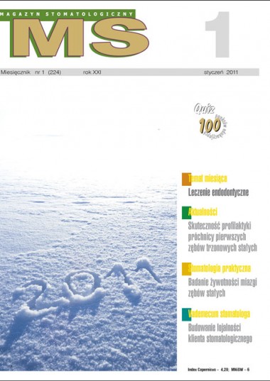 Po tym przydługim wstępie czas wrócić do codzienności, czyli zawartości noworocznego numeru „Magazynu Stomatologicznego” Otwiera go cykl artykułów pod ogólnym hasłem „Leczenie endodontyczne”. Składają się nań opis przypadków leczenia zachowawczego przewlekłych zmian zapalnych tkanek okołowierzchołkowych, praca przeglądowa na temat współczesnych materiałów używanych do przykrycia bezpośredniego miazgi, prezentacja trudnego wieloetapowego leczenia kanałowego zęba z resorpcją wierzchołka korzenia i opis rewizji leczenia endodontycznego zęba z pozostawionymi w kanale igłami Lentulo.