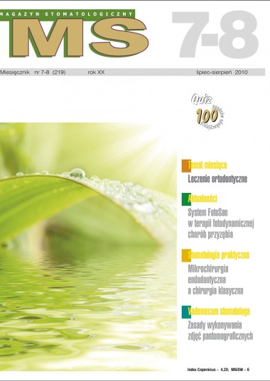 Żyjemy w czasach, w których piękny uśmiech odgrywa wielką rolę nie tylko w życiu osobistym, ale także zawodowym, zwiększając szanse jego posiadacza na znalezienie upragnionej pracy – w myśl porzekadła „jak cię widzą, tak cię piszą”. Natura, niestety, nie jest jednakowo szczodra dla wszystkich i często trzeba naprawiać jej błędy i niedociągnięcia. I tu w sukurs przychodzi ortodoncja, tym bardziej że w ostatnich latach nastawienie Polaków do leczenia ortodontycznego gruntownie się zmieniło. Dzisiaj nikt już się nie wstydzi aparatu ortodontycznego, noszą go młodzi i starzy. I jest to dla nich powód do dumy – świadectwo dbałości o estetyczny wygląd. W leczeniu ortodontycznym aspekt estetyczny, choć bardzo ważny, nie jest jednak najważniejszy. Jak w każdej dziedzinie medycyny celem nadrzędnym jest fizyczne i psychiczne zdrowie pacjenta. Temu zadaniu współczesnej ortodoncji są poświęcone prace w dziale „Temat miesiąca”: „Nietypowe leczenie zatrzymanego kła w żuchwie i braku zawiązka drugiego zęba przedtrzonowego dolnego – opis przypadku”, „Efekty ortodontyczne rozsuwania szwu podniebiennego”, „Maska twarzowa Delaire’a” i „Rosnąca popularność leczenia ortodontycznego – moda, presja rodziców, a może świadomość niedoskonałości własnego uzębienia?”.