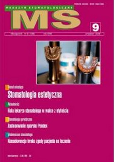 Magazyn Stomatologiczny, 9/2008 Zobacz pozostałe numery W numerze: Temat miesiąca: Stomatologia estetyczna Aktualności: Rola lekarza stomatologa w walce z otyłością Stomatologia praktyczna: Zastosowanie aparatu Pendex Vademecum stomatologa: Konsekwencje braku zgody pacjenta na leczenie