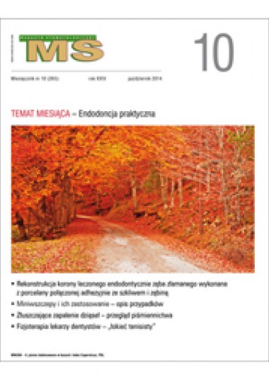 Październikowy numer „Magazynu Stomatologicznego” poświęciliśmy leczeniu endodontycznemu zębów. W pierwszym z czterech artykułów dotyczących endodoncji praktycznej omówiono wykorzystanie tomografii komputerowej wiązki stożkowej w diagnostyce trudnych przypadków resorpcji korzenia, w drugim zaprezentowano zamykanie części wierzchołkowej kanałów za pomocą MTA, w trzecim opisano postępowanie w przypadku obliteracji kanałów korzeniowych, w czwartym zaś powtórne leczenie endodontyczne pierwszego zęba trzonowego żuchwy z pięcioma kanałami. Wszystkie te prace przeczytałem z dużym zainteresowaniem, konfrontując zawarte w nich informacje z własną wiedzą. W dalszej części numeru znajdą Państwo opis rekonstrukcji korony zęba leczonego endodontycznie, a w Vademecum stomatologa kolejny artykuł z serii ABC implantologii i omówienie bardzo ciekawej pracy dotyczącej przyczyn przepchnięcia podchlorynu sodu poza otwór wierzchołkowy korzenia zęba. Z artykułu tego wynika, że wprowadzenie podchlorynu sodu do tkanek okołowierzchołkowych może być następstwem czynników innych aniżeli niewłaściwa technika płukania kanału.