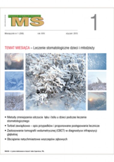 Do Nowego Roku 2015 pozostało zaledwie kilka dni, ale w redakcji praca wre nad pierwszym przyszłorocznym numerem "Magazynu Stomatologicznego". Jego tematem przewodnim jest „Leczenie stomatologiczne dzieci i młodzieży”. Poza opisami ciekawych przypadków znalazły się w nim również prace poglądowe dotyczące m.in. zmniejszenia odczucia lęku i bólu u dzieci podczas leczenia stomatologicznego oraz przyczyn braków zębowych u młodocianych pacjentów, następstw tych braków a także metod leczenia protetycznego, które w tej grupie wiekowej mogą być stosowane. Natomiast w wersji online czasopisma znajdą Państwo m.in. przegląd piśmiennictwa dotyczący współczesnych metod leczenia złamań wyrostka kłykciowego u dzieci oraz opis nowej metody leczenia próchnicy początkowej.