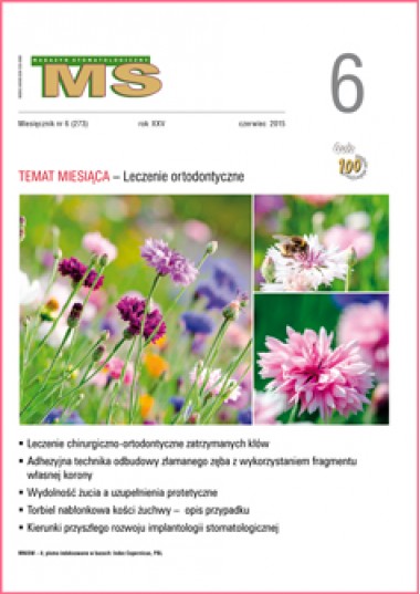 Leczenie ortodontyczne to temat miesiąca bieżącego numeru „Magazynu Stomatologicznego”, w którym znajdą Państwo zarówno prace oryginalne, poglądowe, jak i opisy przypadków. Artykuł otwierający numer dotyczy leczenia chirurgiczno-ortodontycznego zatrzymanych kłów i do jego lektury szczególnie Państwa zachęcam. Jak zawsze polecam również pozostałe artykuły zamieszczone w stałych rubrykach naszego Magazynu. Mnie zainteresował opis przypadku rekonstrukcji zęba z użyciem fragmentu własnej korony oraz artykuł dotyczący wybielania zębów z nadwrażliwością zębiny z zastosowaniem lasera diodowego. Uzupełnieniem artykułu o wybielaniu jest zamieszczony na naszej stronie internetowej film instruktażowy. Natomiast w dziale ABC implantologii mogą Państwo poznać kierunki przyszłego rozwoju implantologii stomatologicznej. Życzę satysfakcjonującej lektury