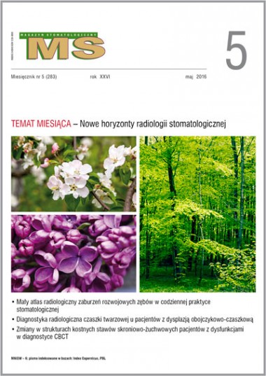 Tak jak w poprzednich latach i w tym roku majowy numer „Magazynu Stomatologicznego” jest poświęcony radiologii stomatologicznej, a redakcji naukowej po raz kolejny podjęła się pani prof. dr hab. n. med. Ingrid Różyło‑Kalinowska. Mnie szczególnie zaciekawił artykuł poświęcony zmianom w strukturach kostnych stawów skroniowo-żuchwowych pacjentów z dysfunkcjami w diagnostyce CBCT oraz publikacja prezentująca niepowodzenia leczenia endodontycznego. W obecnym numerze zamieściliśmy również stosunkowo dużo informacji na temat zdjęć zgryzowo-skrzydłowych, o których przeczytają Państwo m.in. w dziale SPECJALISTA RADZI. Tym razem odpowiedzi na pytanie czytelnika udzieliła pani prof. Ingrid Różyło-Kalinowska.