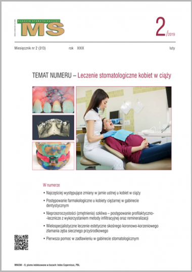 w tym miesiącu tematem przewodnim „MS” jest LECZENIE STOMATOLOGICZNE KOBIET W CIĄŻY. Poza pracami prezentującymi opiekę stomatologiczną i postępowanie farmakologiczne w tej grupie pacjentek w numerze zamieściliśmy zalecenia higieniczno‑dietetyczne, jakie lekarz dentysta powinien przekazać kobiecie spodziewającej się dziecka. W lutowym wydaniu opublikowaliśmy także inne artykuły wartościowe dla lekarzy praktyków, takie jak „Wielospecjalistyczne leczenie estetyczne skośnego koronowo‑korzeniowego złamania zęba siecznego przyśrodkowego – opis przypadku”, oraz publikacje, które mogą zainteresować specjalistów, jak choćby „Metoda biofunkcjonal-na leczenia pacjentów bezzębnych”. Zachęcam Państwa również do lektury działu VADEMECUM STOMATOLOGA. Tym razem znalazły się w nim między innymi artykuły poświęcone dekontaminacji narzędzi i sprzętu medycznego w gabinecie stomatologicznym oraz pierwszej pomocy w zadławieniu.