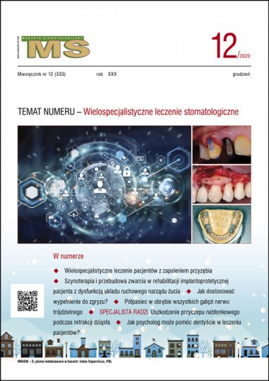 tematem miesiąca grudniowego numeru MAGAZYNU STOMATOLOGICZNEGO jest WIELOSPECJALISTYCZNE LECZENIE STOMATOLOGICZNE. W dziale tym zamieściliśmy wyłącznie opisy przypadków prezentujące leczenie, w które zaangażowali się implantolodzy, protetycy, periodontolodzy, ortodonci, endodonci, a nawet fizjoterapeuci. W dziale STOMATOLOGIA PRAKTYCZNA moją uwagę zwrócił artykuł dotyczący korekty wypełnień kompozytowych z zachowaniem ważnych zasad okluzji oraz praca opisująca leczenie endodontyczne zęba wgłobionego.