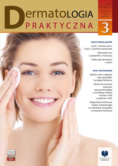 Słowa kluczowe: dzieci, linijna dermatoza pęcherzowa, czynniki prowokujące, diagnostyka, leczenie