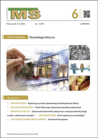 tematem czerwcowego numeru „Magazynu Stomatologicznego” jest STOMATOLOGIA KLINICZNA. Znajdą w nim Państwo pracę kazuistyczną, prezentującą rolę badań radiologicznych we wczesnym wykrywaniu klinicznie bezobjawowych zmian typu dysplazji kostniwno-kostnej okołowierzchołkowej w obrębie żuchwy. Ponadto publikujemy pracę poglądową dotyczącą wyboru klinicznego zastosowania łączników protetycznych do prac stałych na implantach w aspekcie ich budowy.