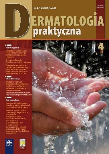Terapia skojarzona pegylowanym interferonem alfa (Peg-IFN-α) i rybawiryną jest obecnie złotym standardem leczenia przewlekłego zapalenia wątroby typu C. Wśród najczęściej obserwowanych objawów niepożądanych tej terapii wymienia się: objawy rzekomogrypowe, anemię hemolityczną, zaburzenia nastroju oraz zmiany skórne w miejscach wykonywania iniekcji IFN. W literaturze opisywane są również przypadki zaostrzenia lub wystąpienia pierwszego wysiewu zmian łuszczycowych, zwykle w okresie kilku tygodni od rozpoczęcia terapii interferonem.